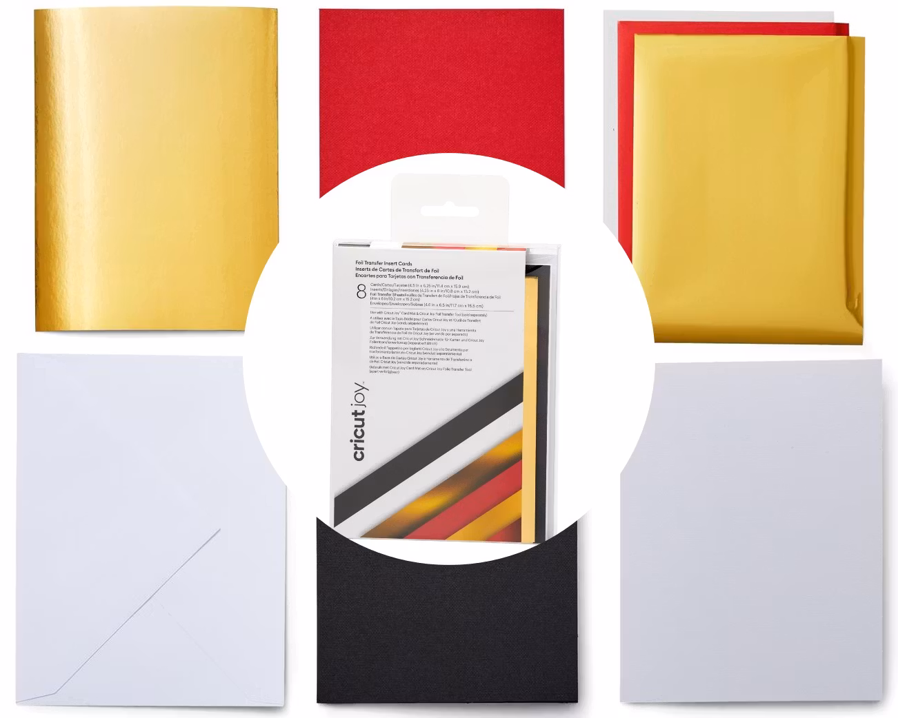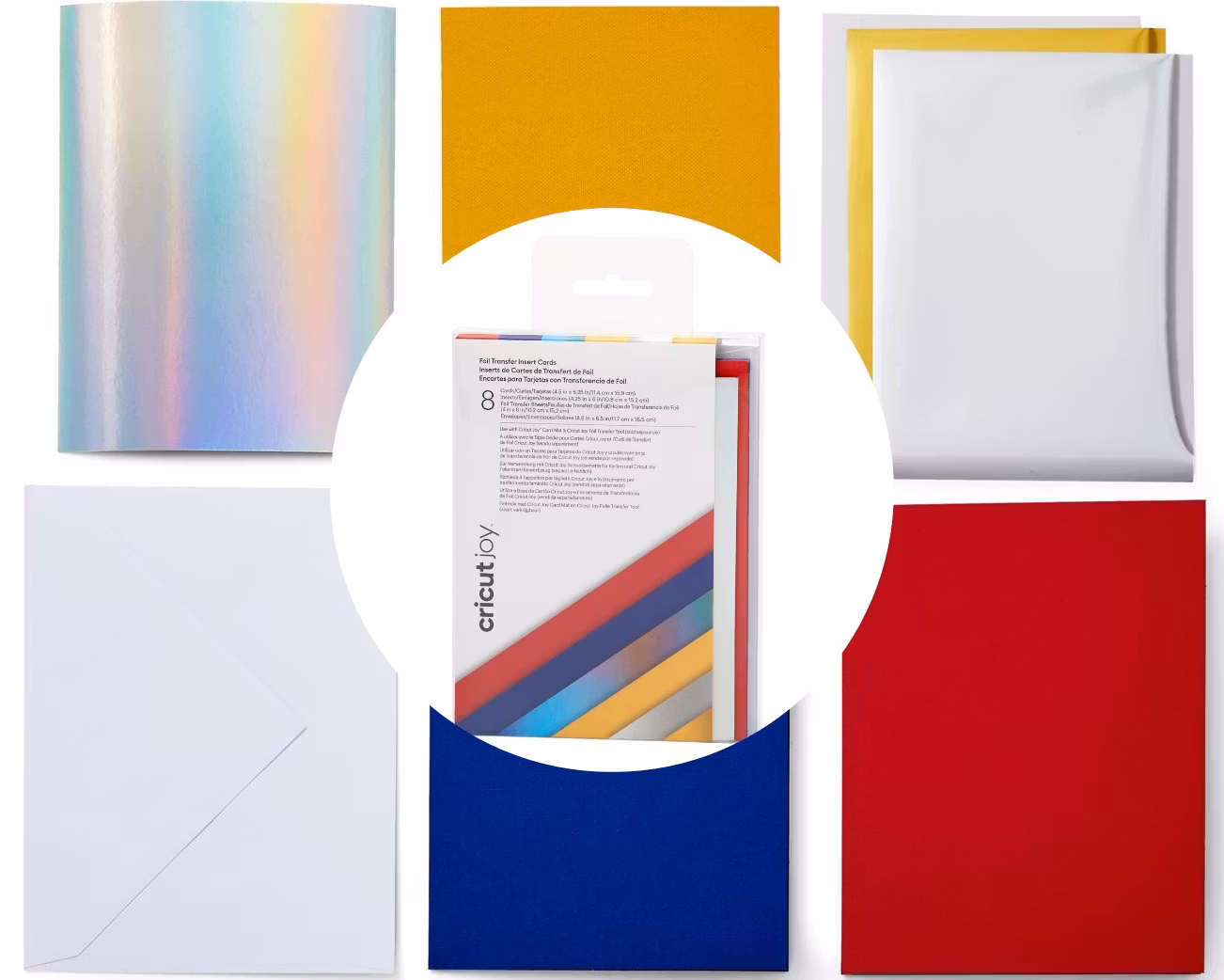 Med foil transfer insert cards har du snabbt helt egna och personliga gratulationskort. Används med den speciella kortmattan för Cricut Joy för att enkelt skapa fina kort för alla tillfällen.