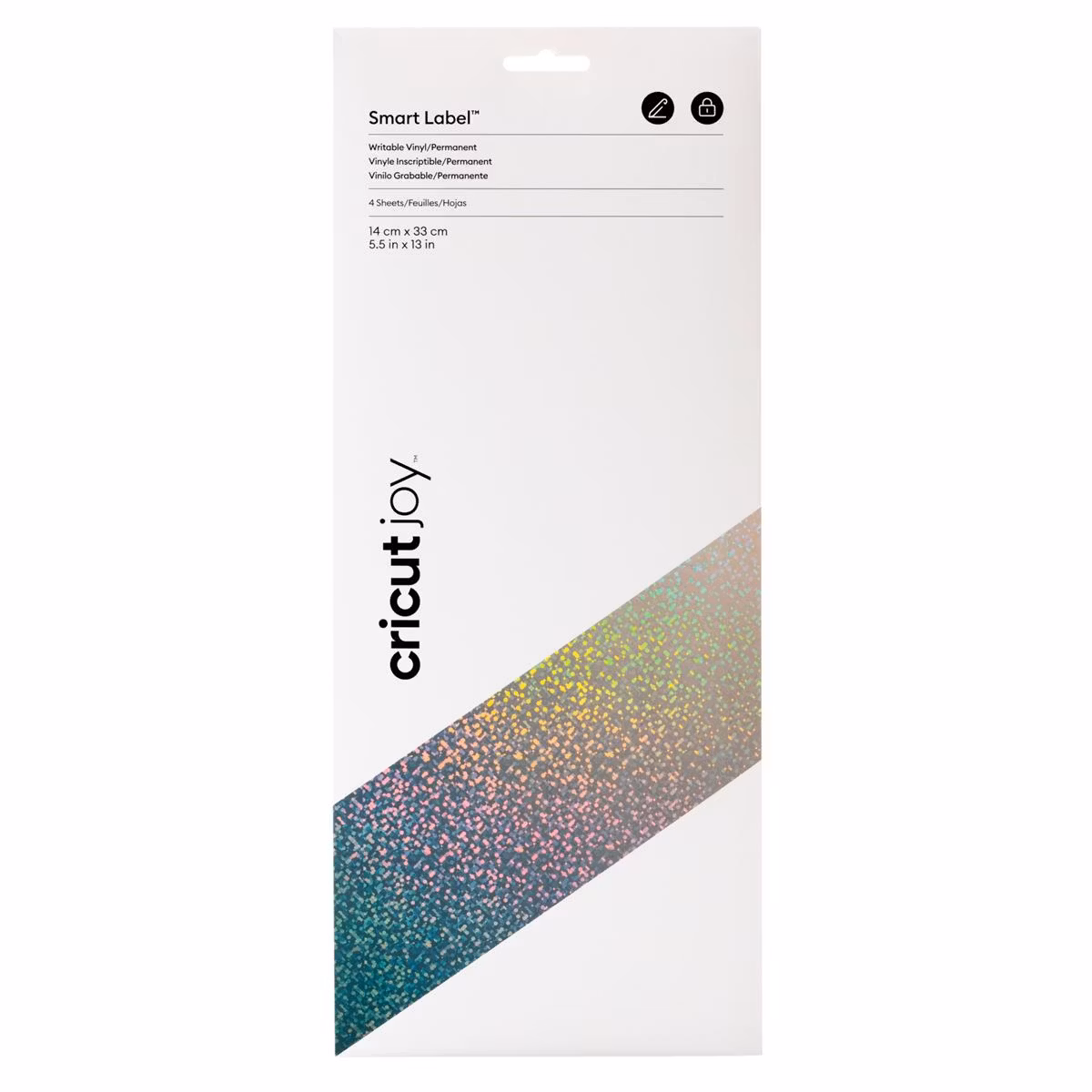 Härlig holographic silver vinyl du kan skriva på med din Cricut Joy! Skapa lyxiga etiketter eller presenter och kort. Innehåller 4 ark.